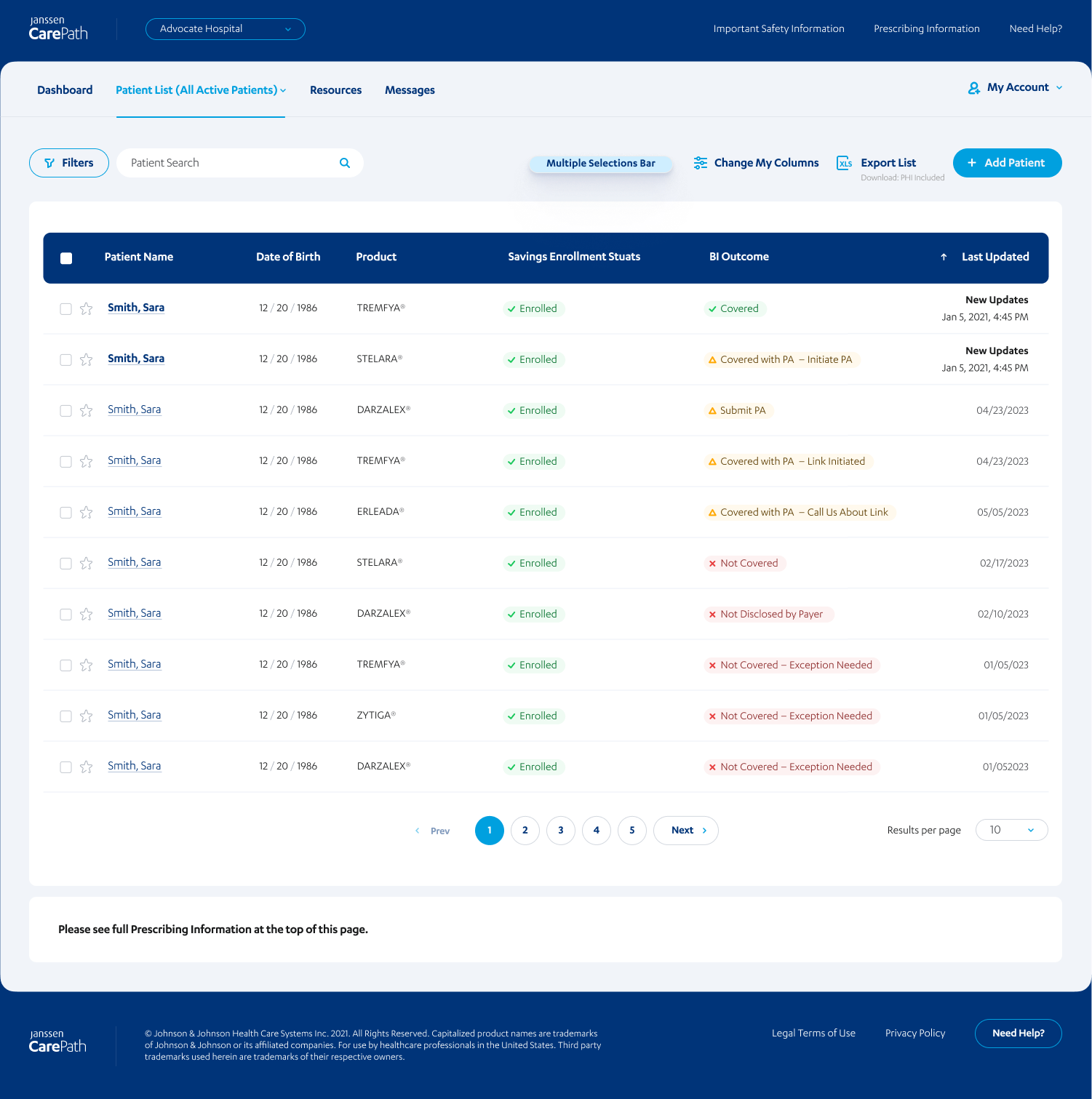 Janssen CarePath, part of Johnson & Johnson Pharmaceuticals, provides patient support services (Benefit Investigation, Insurance Coverage review, Financial Assistance programs, Treatment and Care coordination resources, etc.). The portal plays a critical role in connecting user to healthcare resources, making usability, accuracy, and compliance essential to the overall experience.